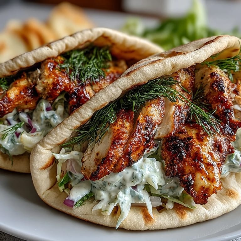 Save The first time I made these chicken pitas, my kitchen smelled like a Mediterranean street food stall. The smoked paprika hit the hot pan and my roommate came wandering out, asking what restaurant I'd ordered from. We ate standing up at the counter, slaw dripping everywhere, both agreeing this was the new Friday night staple.