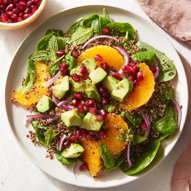 Save A vibrant, refreshing bowl packed with zesty citrus, creamy avocado, and protein-rich quinoa—perfect for a light lunch or a nourishing side.