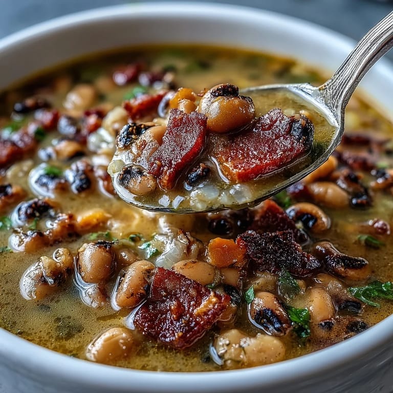 Save My grandmother swore by this soup every January first, claiming the black-eyed peas held some kind of magic that would stick with you through the whole year. I was skeptical until the first time I actually tasted it, and suddenly I understood why she'd wake up before dawn to get a pot simmering. The combination of smoky ham, tender peas, and that deep golden broth felt less like superstition and more like genuine comfort wrapped in a bowl.