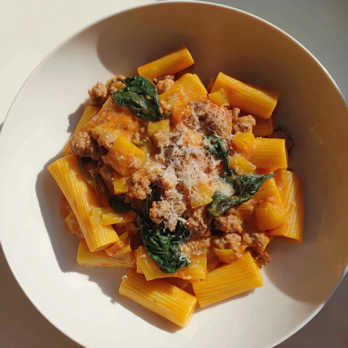 This recipe is genuinely forgiving about substitutions, which is part of why it's become my go-to weeknight anchor. Don't have spinach? Leave it out or toss in kale, arugula, or even torn basil at the end. Want to lighten things up? Use turkey sausage or a blend of ground meat. Missing some ingredient? Mushrooms sautéed with the onion add earthiness, bell peppers add sweetness, and fresh herbs scattered on at the end feel like a small luxury.