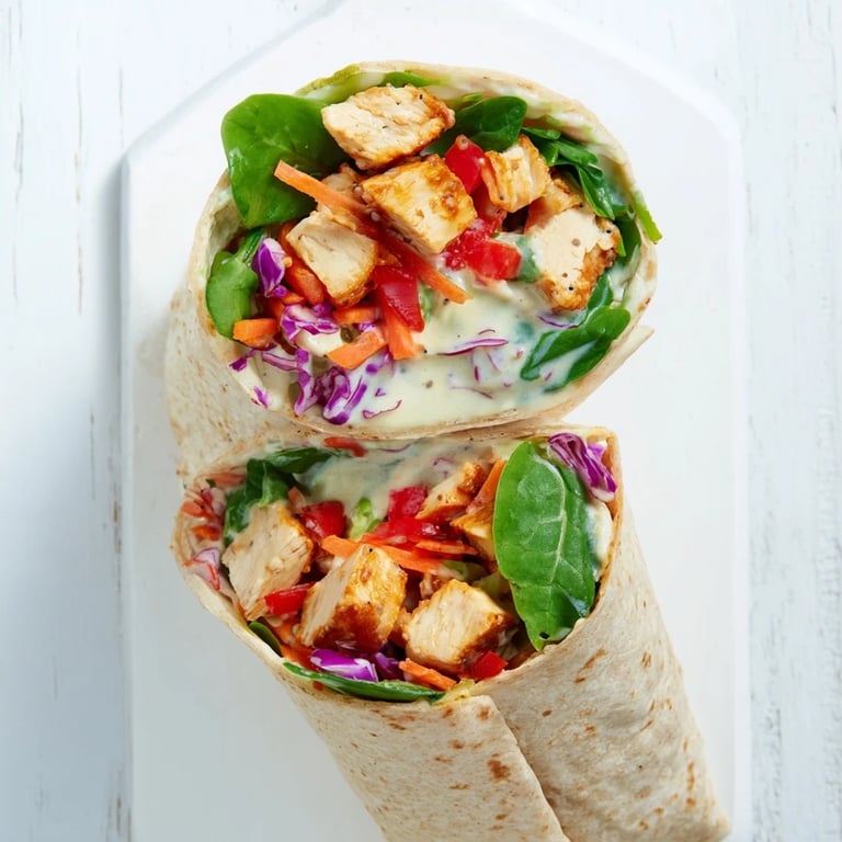 Save A vibrant, fresh chicken salad wrap inspired by the cheerful spirit of poppies—packed with crisp greens, colorful vegetables, and a light, tangy dressing, all wrapped for easy enjoyment.