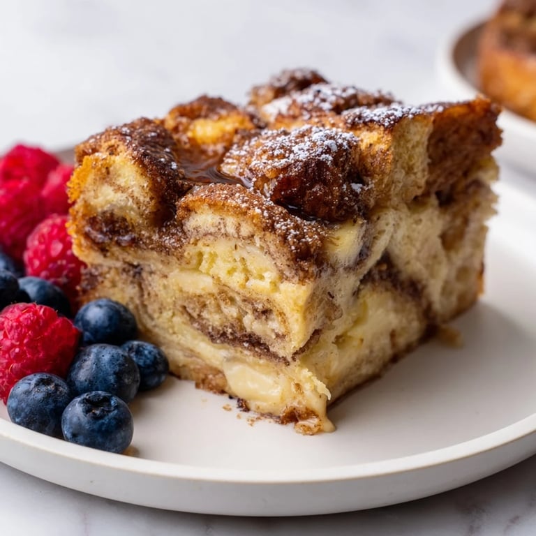 Save A comforting, custardy baked French toast infused with warm spices, perfect for easy weeknight dinners or a relaxed weekend breakfast treat.