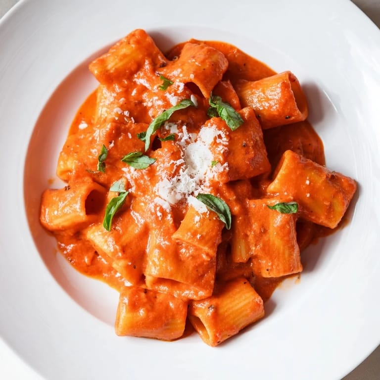 Save The kitchen smelled like garlic and heat, and I was standing there with a wooden spoon, watching the sauce bubble and wondering if I'd gone too far with the pepper flakes. My roommate had challenged me to make something that actually had flavor, something that wasn't bland, and I took it personally. That night, with a box of rigatoni and a jar of crushed tomatoes, I learned that a little cream can tame fire without putting it out completely. The pasta clung to every ridge of the rigatoni, and we ate it straight from the skillet, too impatient to bother with bowls.