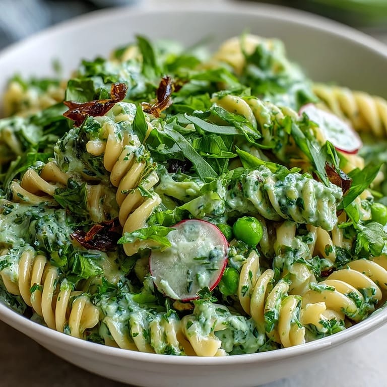 Save My neighbor handed me a container of this pasta salad on a sweltering July afternoon, and I was skeptical until the first bite—somehow a vegan dressing had become the most elegant, creamy thing I'd ever tasted at a potluck. The green goddess base tastes like someone bottled springtime, and it convinced me that plant-based cooking doesn't mean sacrificing richness or flavor. Now I make it constantly, not just for the compliments, but because it feels like eating something genuinely good for you that also happens to be ridiculously delicious.